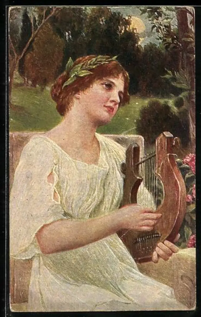 Ölgemälde-Imitations-AK Degi Nr. 919: Dame spielt Musik im Garten