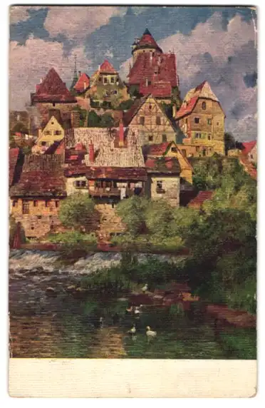 Ölgemälde-Imitations-AK Schwäbisches Städtchen, Adolf Tamm