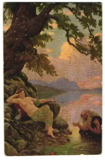 Ölgemälde-Imitations-AK Waldnymphe und Nix, A. Dieffenbacher