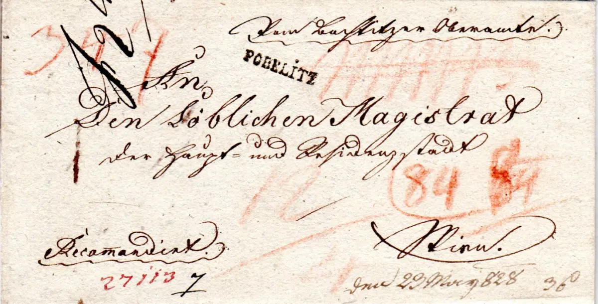 Österreich 1828, Mähren-L1 Pohrlitz auf Stempelpapier Einschreiben Brief n. Wien