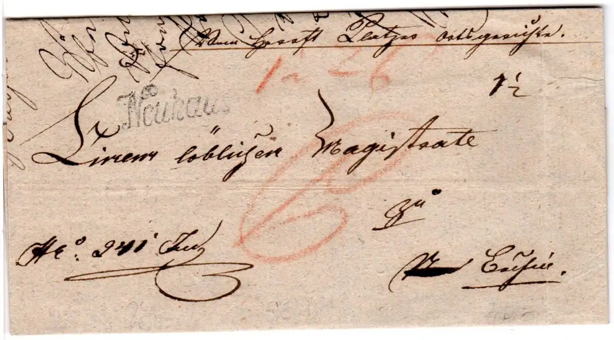 Österreich 1830, Schreibschrift-L1 Neuhaus auf Porto Brief