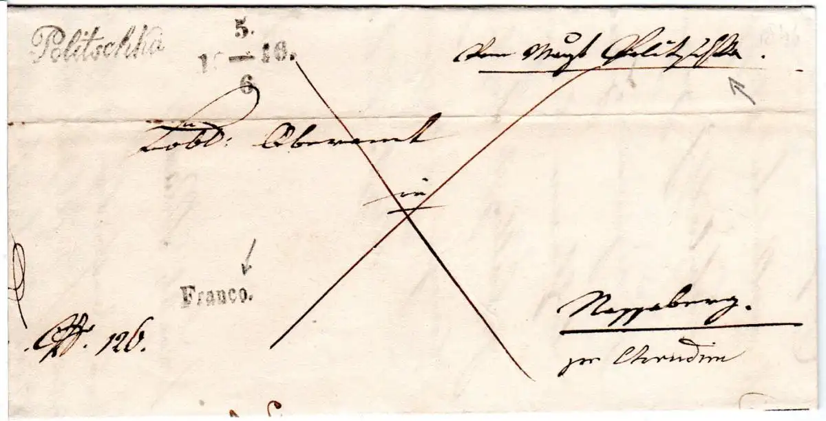 Österreich 1846, L1 Politschka + Datumstempel + Franco auf Brief m. Inhalt
