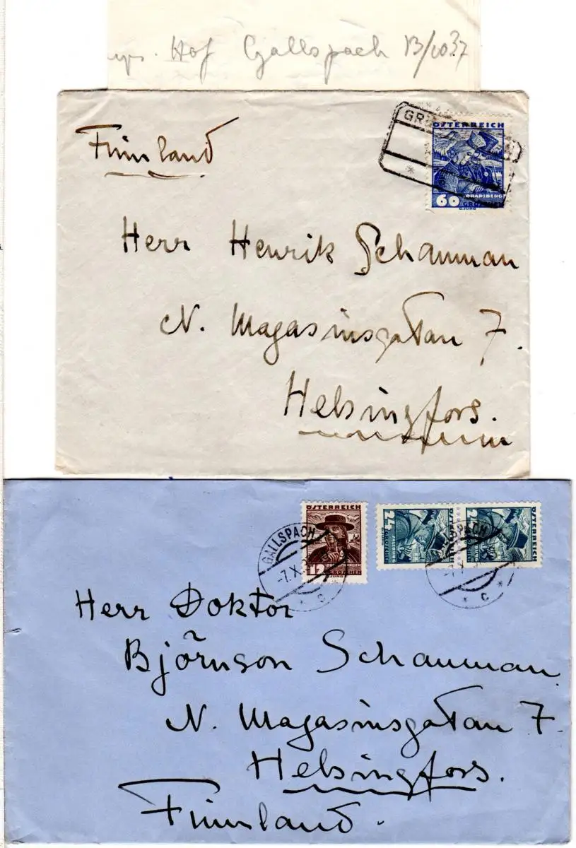 Österreich 1937, 2 Briefe v. Gallspach Oberösterreich n. Finnland