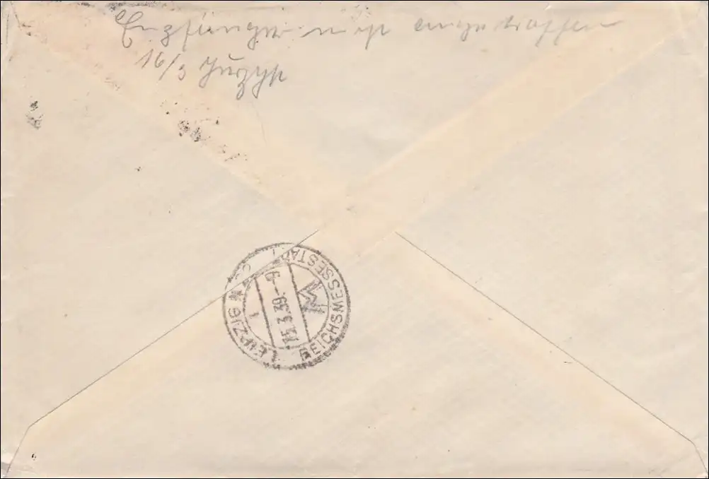 Österreich: 1939, Postsache aus Wien als Einschreiben nach Leipzig