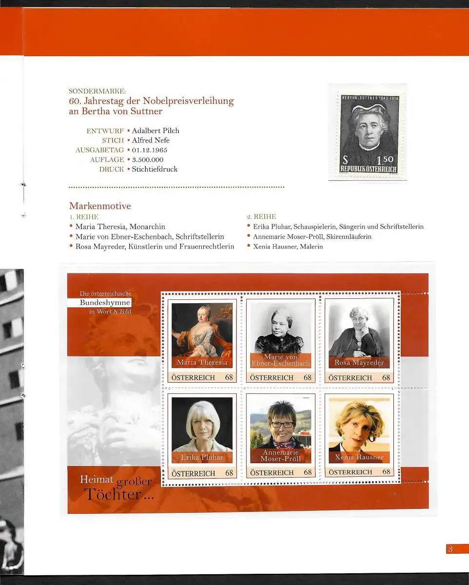 Österreich: Heimat großer Töchter, Heft mit Briefmarkenblock+Marken, postfrisch