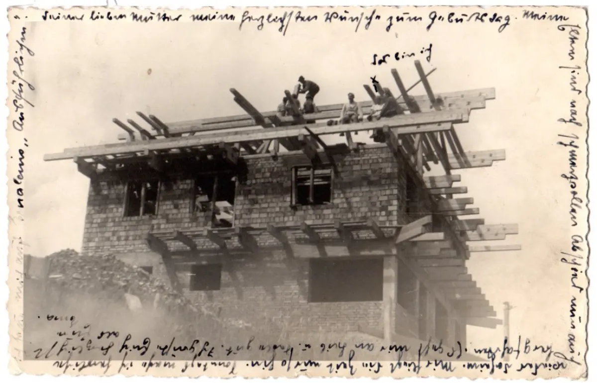 Foto-AK m. 12 Gr. u. Textmitteilung "Hirschegg, den 8.7.1936.......du als Geburtstagskind sollst die allerneueste Aufnahme von meinem Häusel kurz bevor das Richtfest war..."