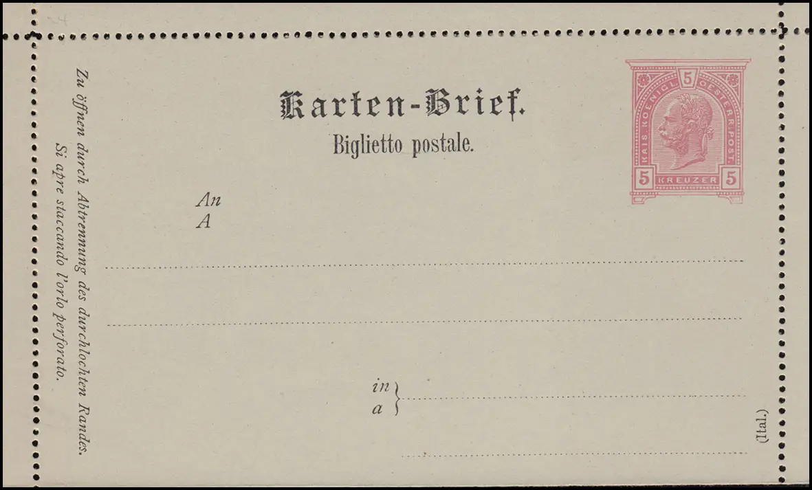 Österreich K 24 Kaiser Franz Josef 5 Kreuzer rosa: Italienisch, **