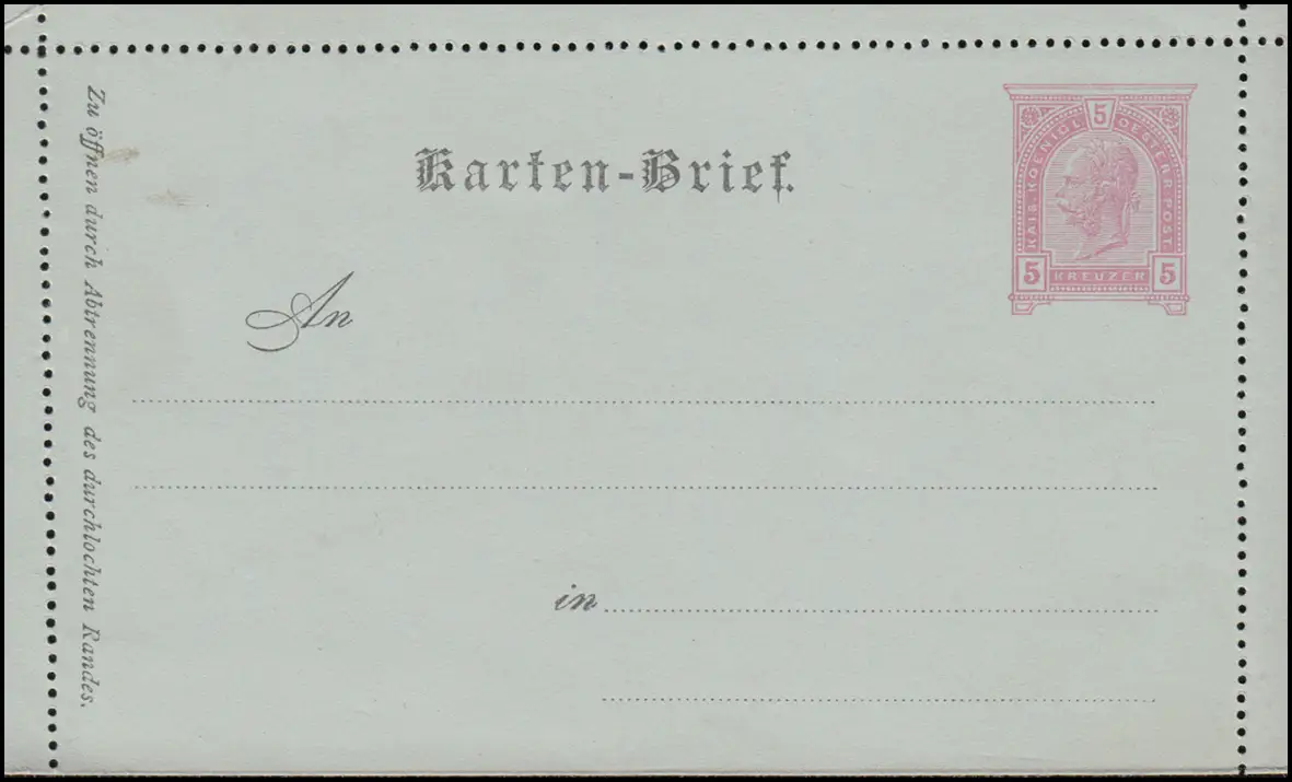 Österreich Kartenbrief K 22 Franz Joseph 5 Kreuzer deutscher Text, ungebraucht