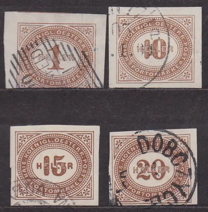 Österreich, Portomarken Mi-Nr. 10, 16, 18 + 19 gest., Ziffernzeichnung