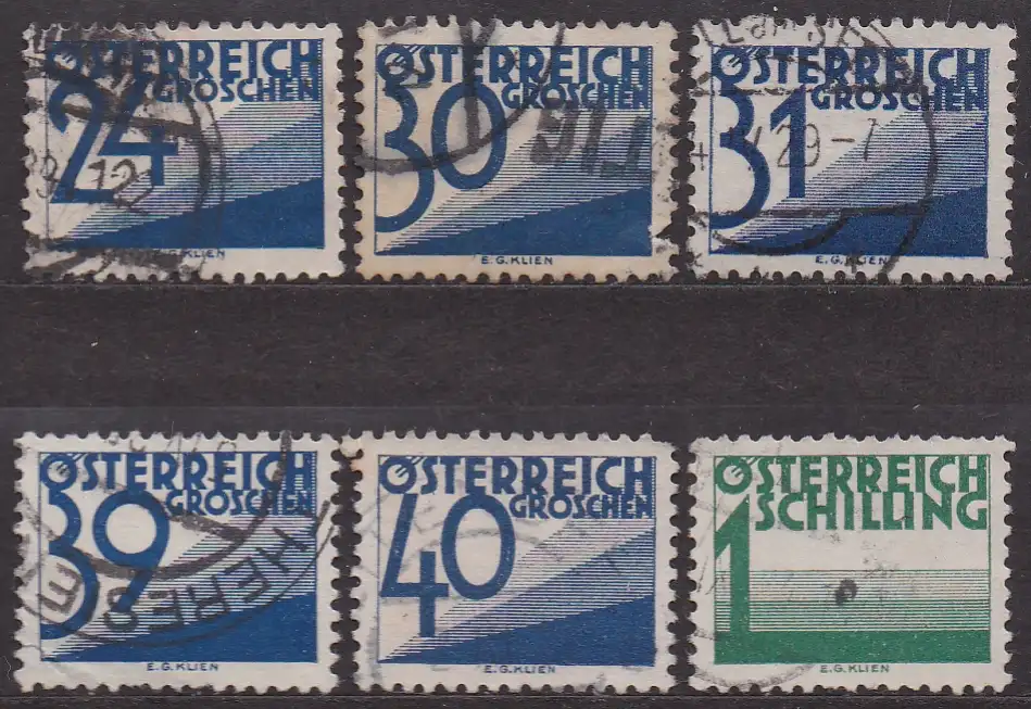 Österreich, Portomarken Mi-Nr. 147, 149, 150, 152, 153 + 155 gest., Ziffernzeichnung