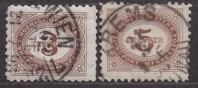 Österreich, Portomarken Mi-Nr. 3 + 4 gest., Ziffernzeichnung