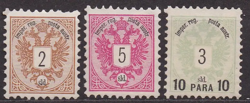 Österreich - Post in der Levante, Mi-Nr. 8, 10 A + 14 I (*), Wappenzeichnung