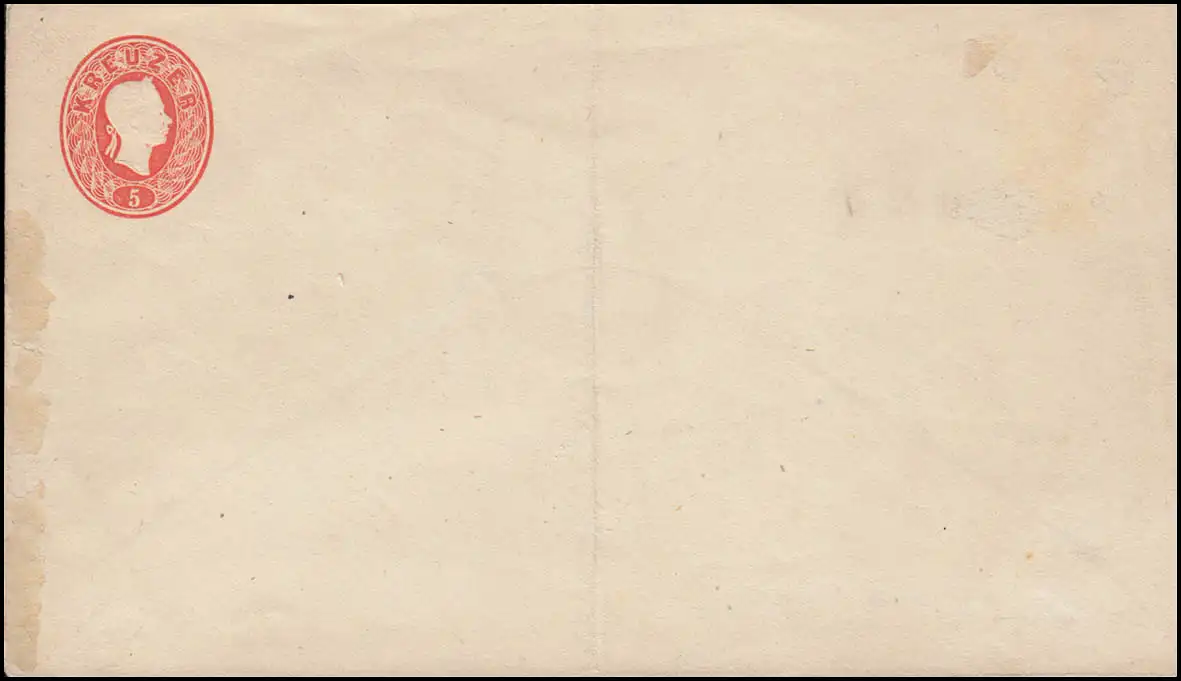 Österreich Umschlag 2A Kaiser Franz Joseph 5 Kreuzer 1861, ungebraucht, Mängel