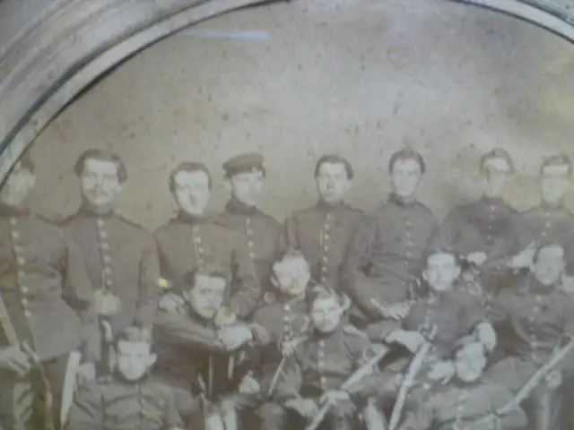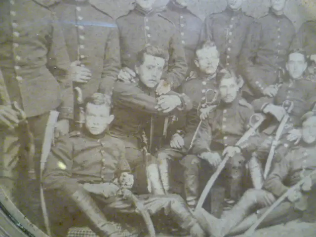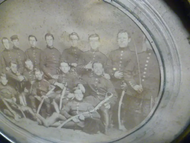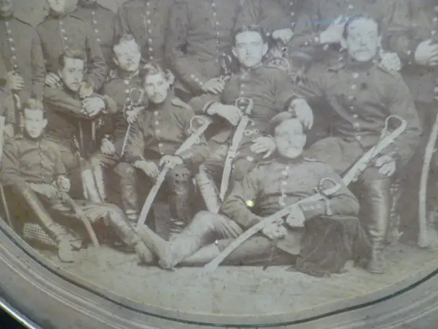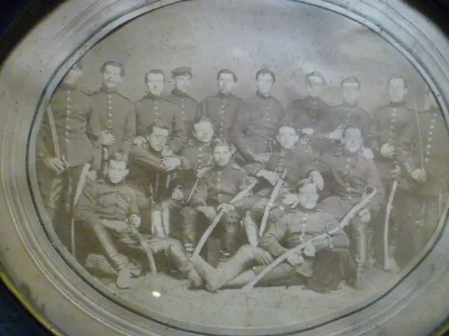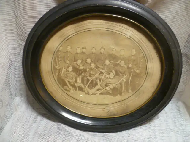 Offiziere als Truppenbild Originaler ovaler aus massivem Holz schwarz poliert Messingleiste Innenleiste gefertigter Rahmen 34 cm x 30 cm