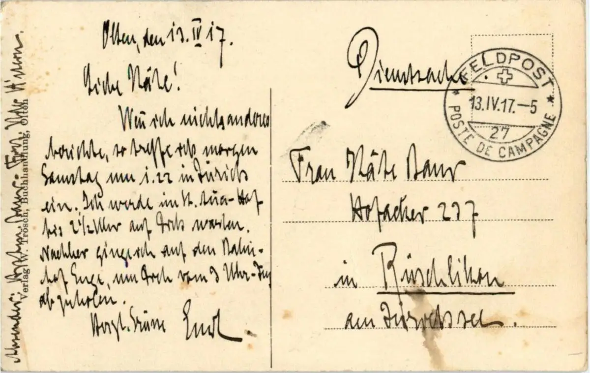 Danke. Alles Bestens. Können Sie mir allenfalls mitteilen, aus welchem Jahr die Postkarte stammt? Besten Dank.