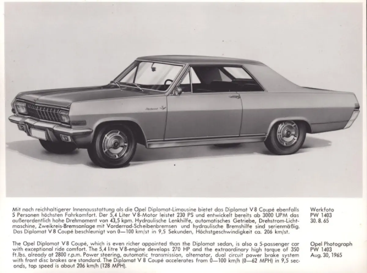 Opel Dipolmat V8 Coupé Werksfoto 8.1965