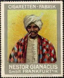 Cigaretten - Fabrik Nestor Gianaclis GmbH Frankfurt / Main, Rückseite mit Reklame, Größe/Zustand: 6x5 , guter Zustand, Original alte Reklamemarke die seinerzeit für die Werbung benutzt wurde