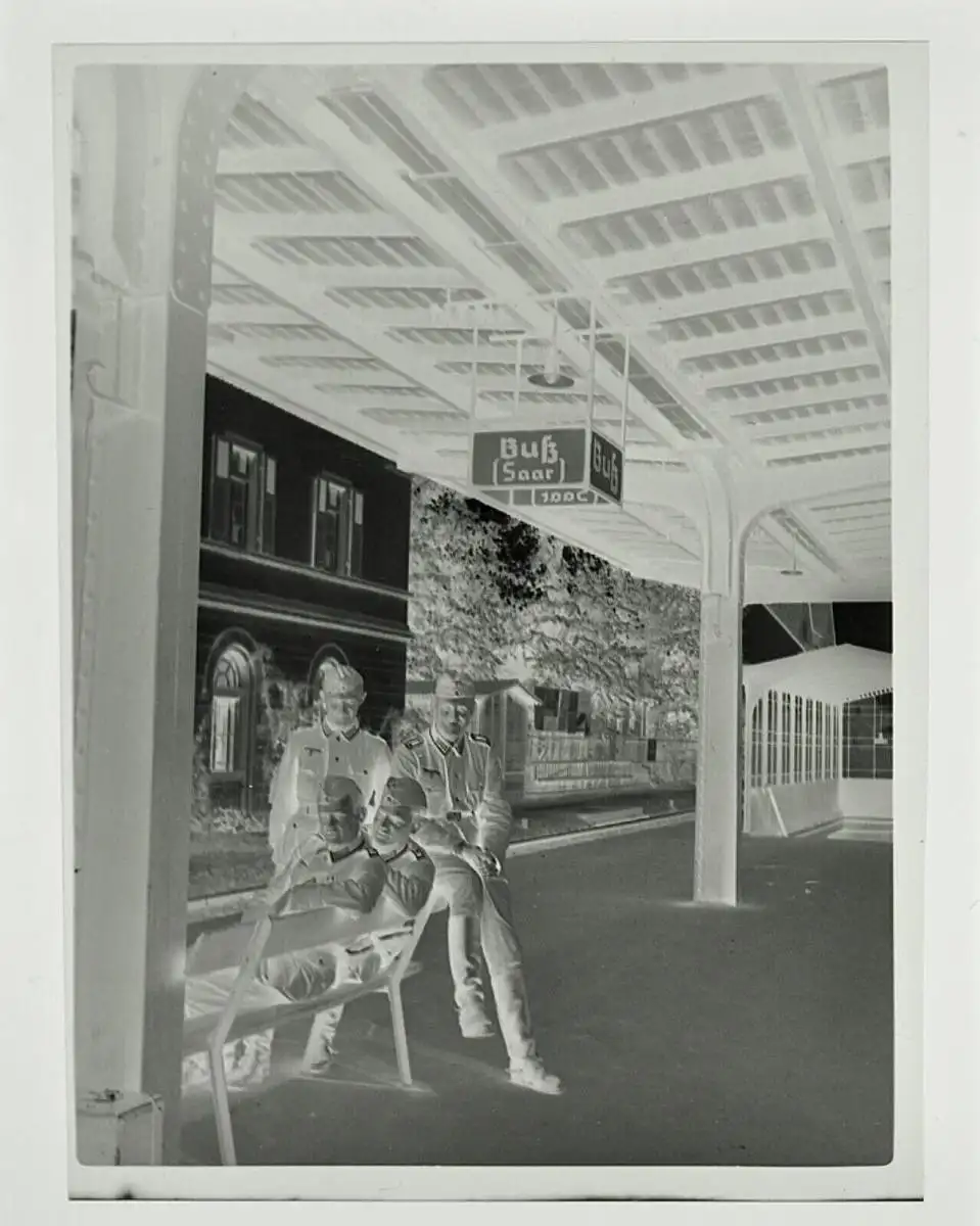 Orig. Negativ 6x4cm Bous Buß Bahnhof Soldaten am Bahnsteig 1941 Saarbrücken Saar