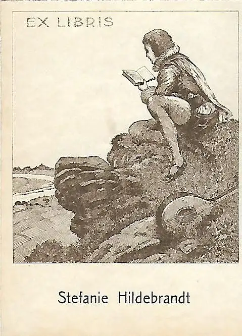 Schlagworte: Exlibris, Grafik, Original-Kupferstich, Kupferstich, Lesender, Musiker, Fels