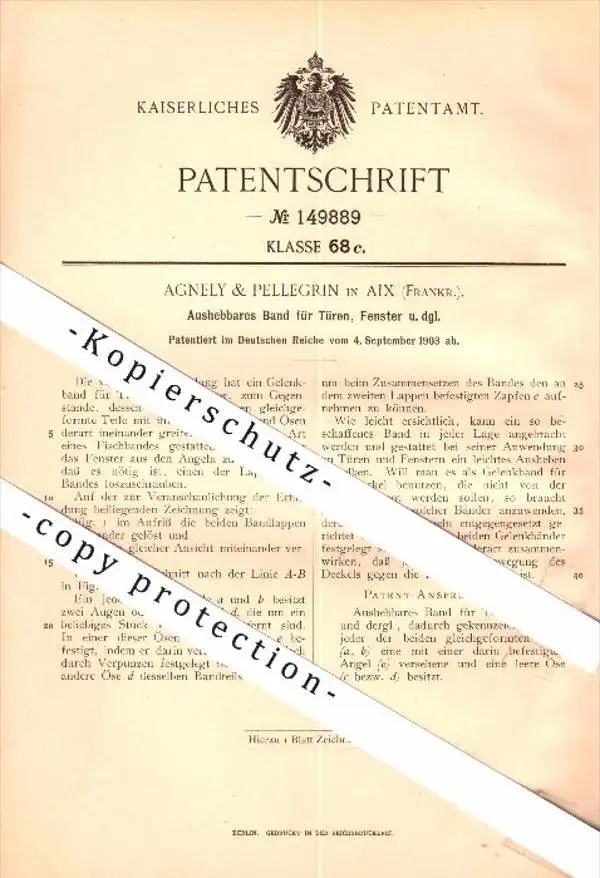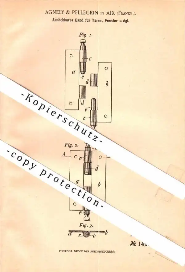 Original Patent - Agnely & Pellegrin à Aix , 1903 , Charnière pour portes et fenetres , fenetre !!!