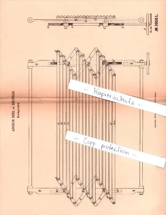 Original Patent - Anselm Heel in Bielefeld , 1886 , Siebplatte !!!