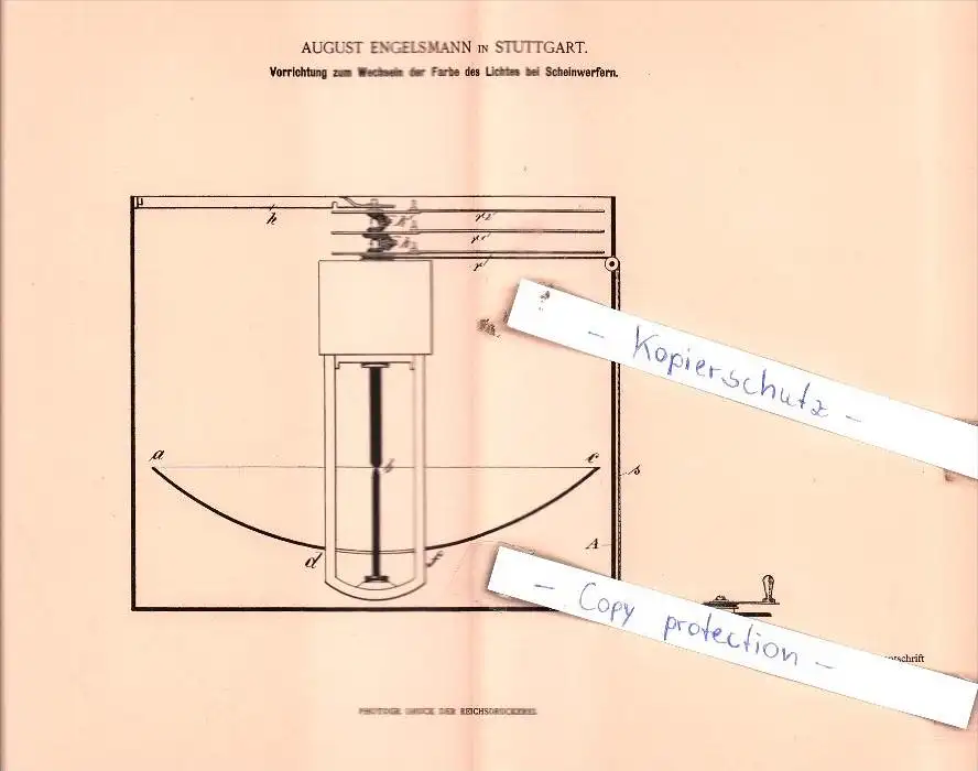 Original Patent - August Engelsmann in Stuttgart , 1902 , Scheinwefer !!!