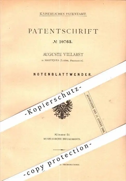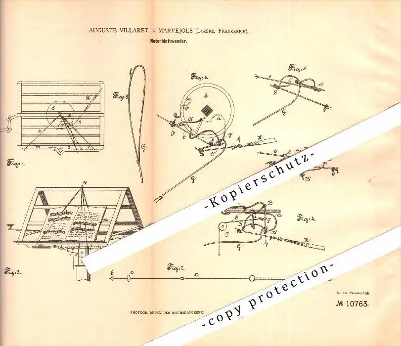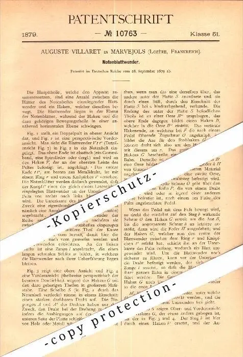 Original Patent - Auguste Villaret à Marvejols , Lozere , 1879 , Fiche Turner !!!