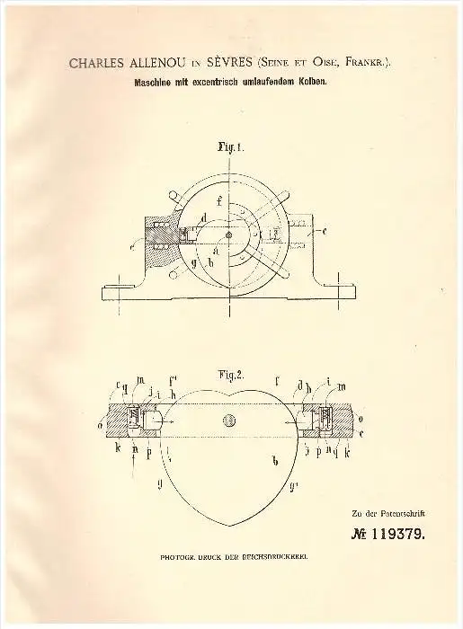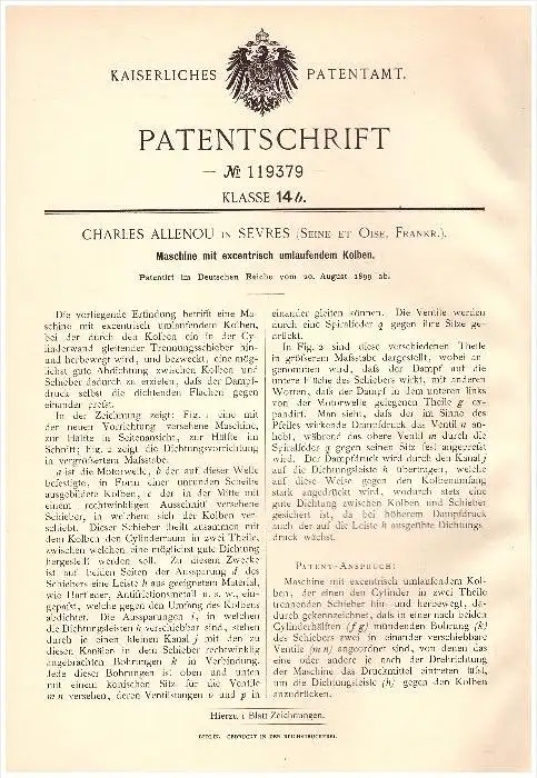 Original Patent - Charles Allenou in Sevres , 1899 , Machine avec piston excentrique , Seine et Oise !!!