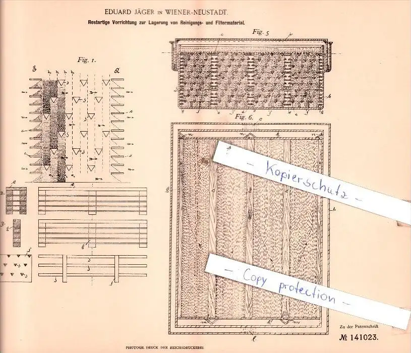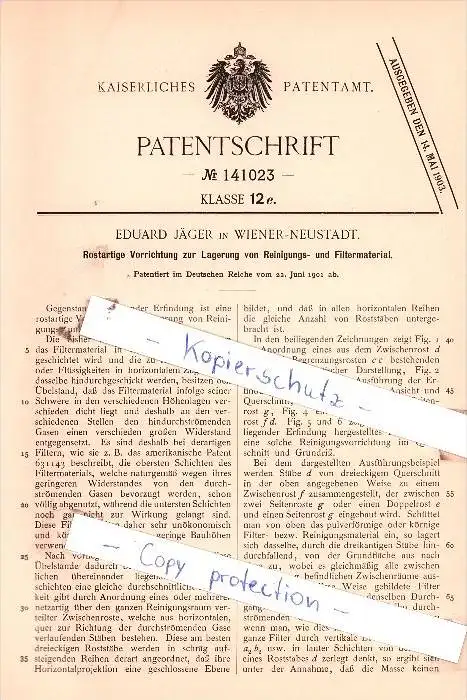 Original Patent - Eduard Jäger in Wiener-Neustadt , 1901 , Lagerung von Reinigungs- und Filtermaterial !!!