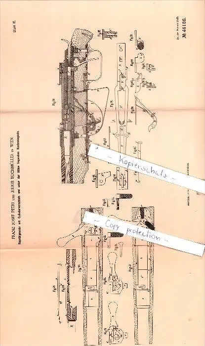 Original Patent - F. J. Petri und J. Buchmüller in Wien , 1888 , Repetirgewehr !!!