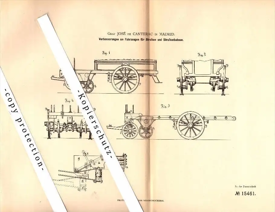 Original Patent - Graf José de Canterac en Madrid , 1881 , tranvía , ferrocarril , conde !!!