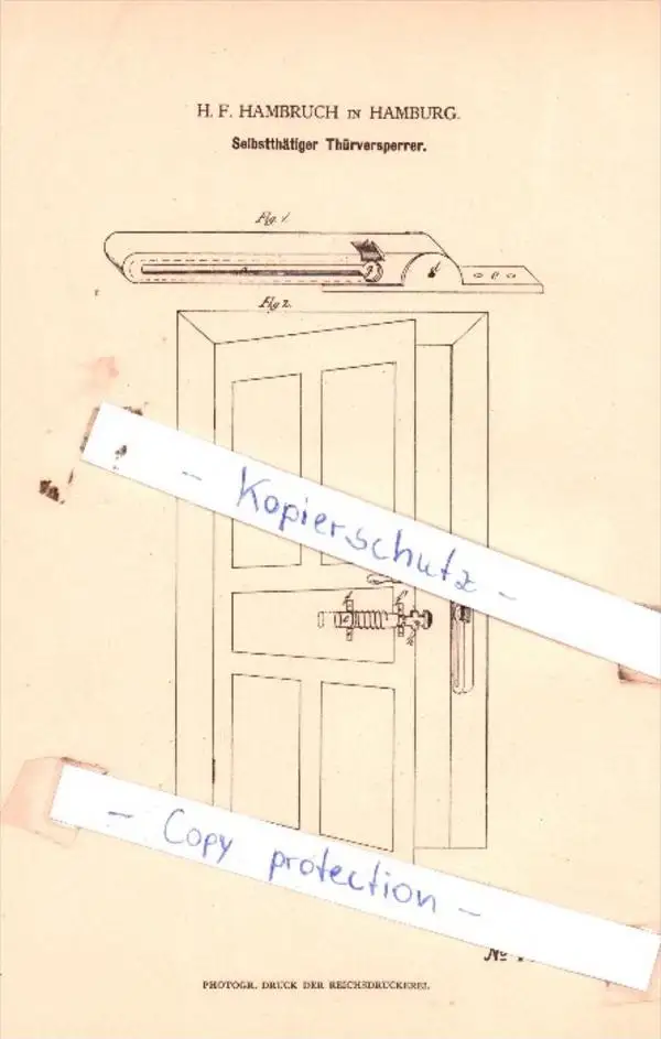 Original Patent - H. F. Hambruch , 1880 , Selbstthätiger Thürversperrer !!!