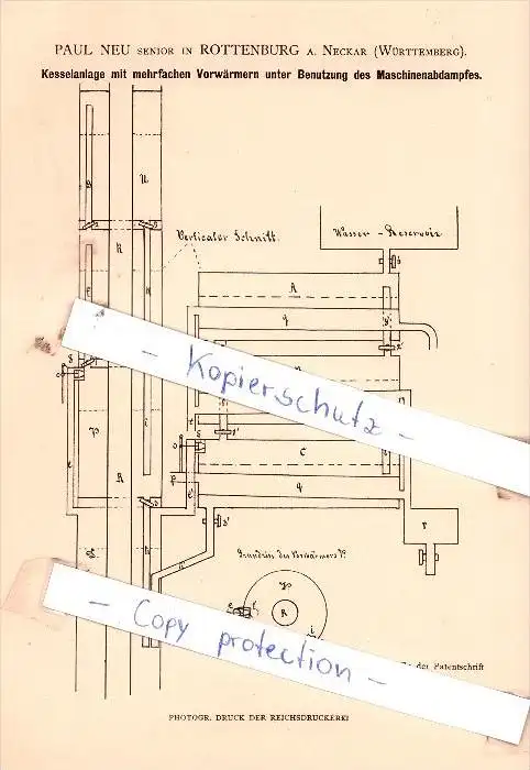 Original Patent - Paul Neu senior in Rottenburg a. Neckar , Württemberg , 1881 , !!!