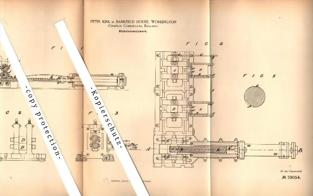 Original Patent - Peter Kirk in Bankfield House , Workington , 1886 , Iron mill !!!