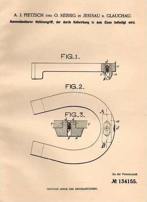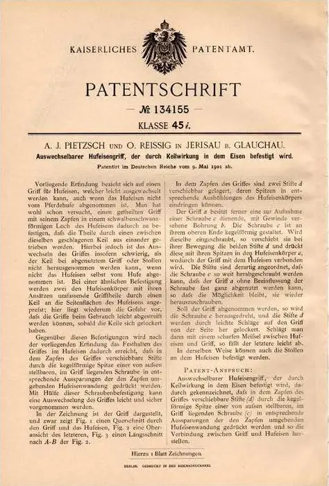 Original Patentschrift - A. Pietzsch und O. Reissig in Jerisau b. Glauchau , 1901 , Hufeisengrif , Hufeisen , Pferde !!!