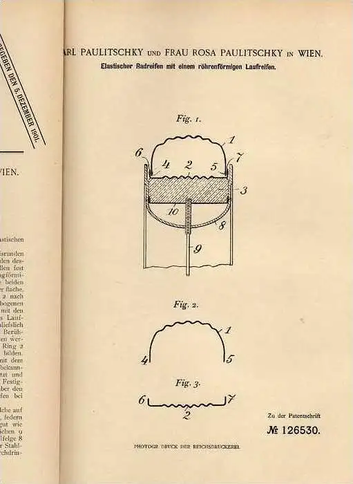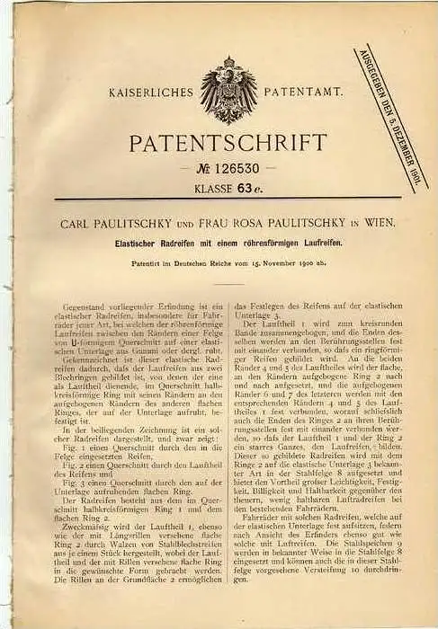 Original Patentschrift - C. und R. Paulitschky in Wien , Reifen , Radreifen 1900 !!!
