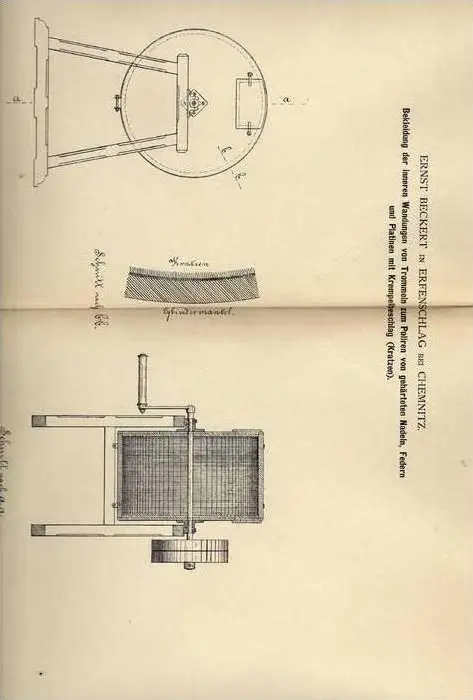 Original Patentschrift - E. Beckert in Erfenschlag b. Chemnitz ,1882 , Poliermaschine !!!