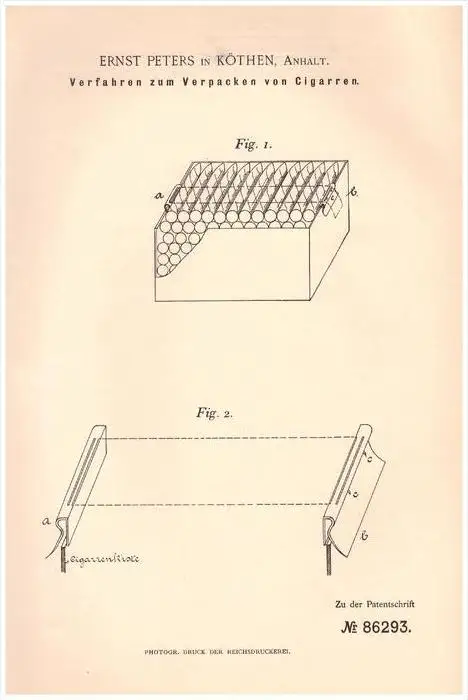 Original Patentschrift - Ernst Peters in Köthen , Anhalt , 1895, Cigarren , Verpackun , Zigarrenkiste , Cigarre , Tabak