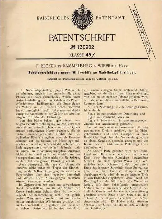 Patent: Schutzvorrichtung gegen Wildverbiß an Nadelholzpflänzlingen
