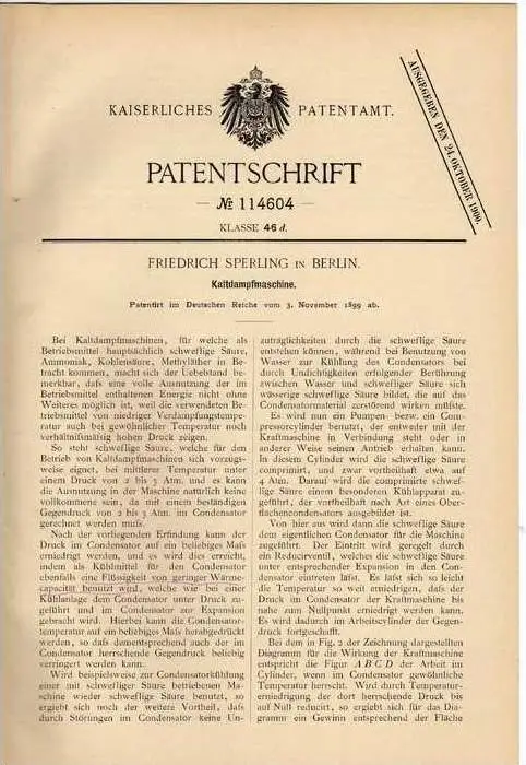Original Patentschrift - F. Sperling in Berlin , Dampfmaschine , 1899 !!!
