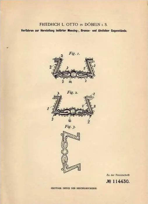 Original Patentschrift - L. Otto in Döbeln i.S., 1900 , Herstellung von Bronze und Messing Gegenständen , Schmuck !!!