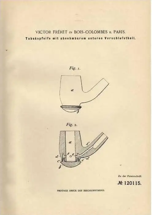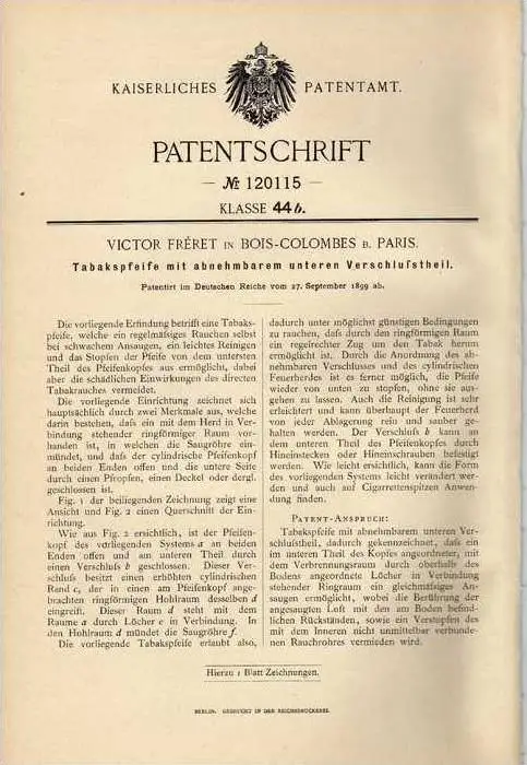 Original Patentschrift - V. Fréret in Bois-Colombes , 1899 , sifflement de tabac à pipe du tabac !!!