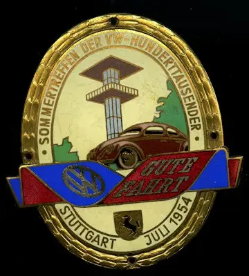 Original Plakette Sommertreffen der VW Hunderttausender in Stuttgart 1954