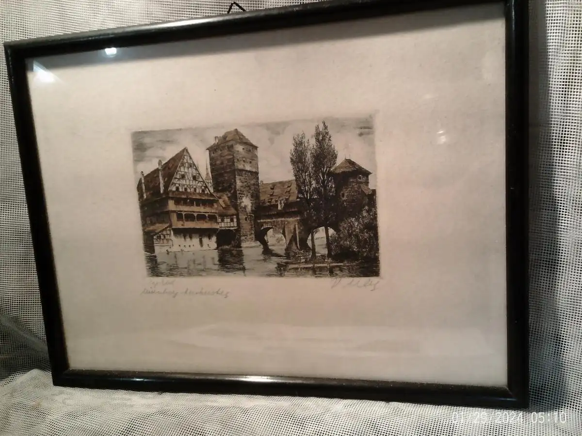Original Radierung "Nürnberg Henkersteg" Bernhard. Liebig 1893-? org. Rahmung Masse : 27 x 20 cm