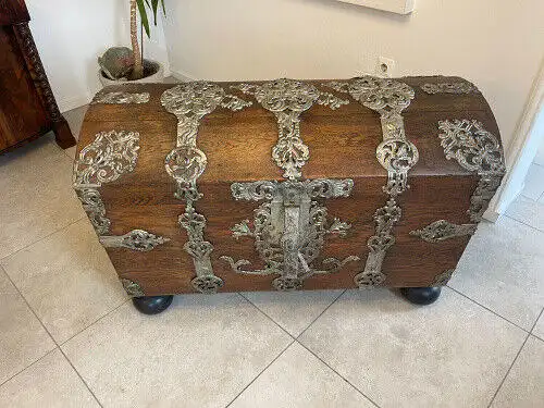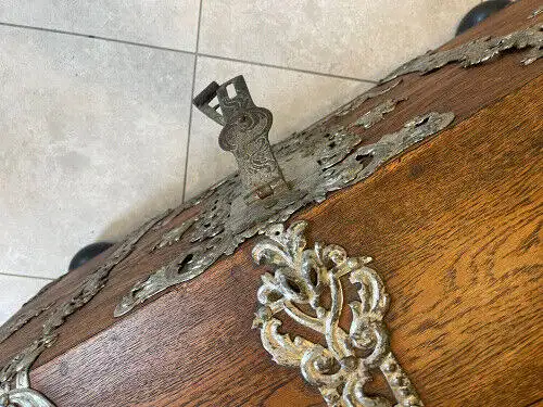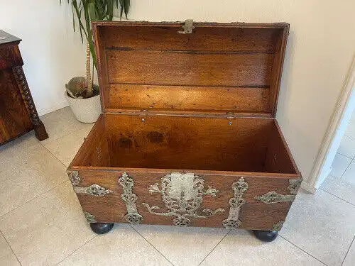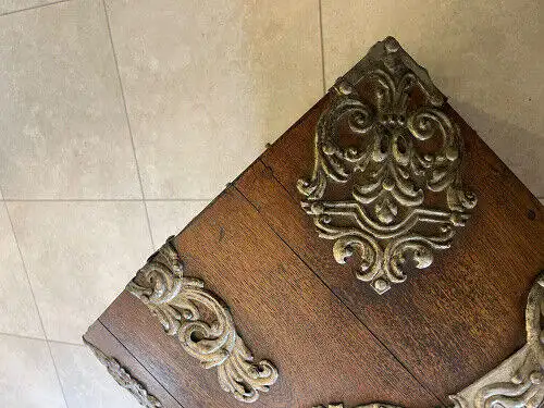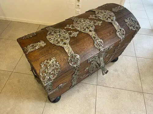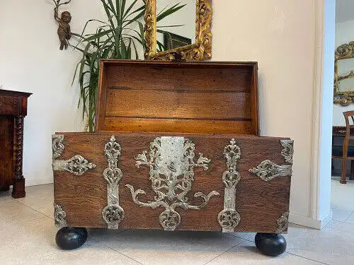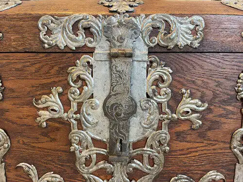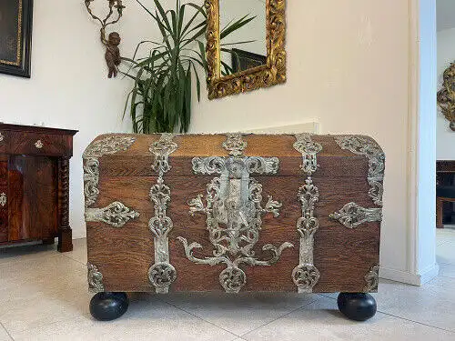 Diese antike Barock-Truhe aus Eichenholz ist ein wahres Schmuckstück der Barockzeit