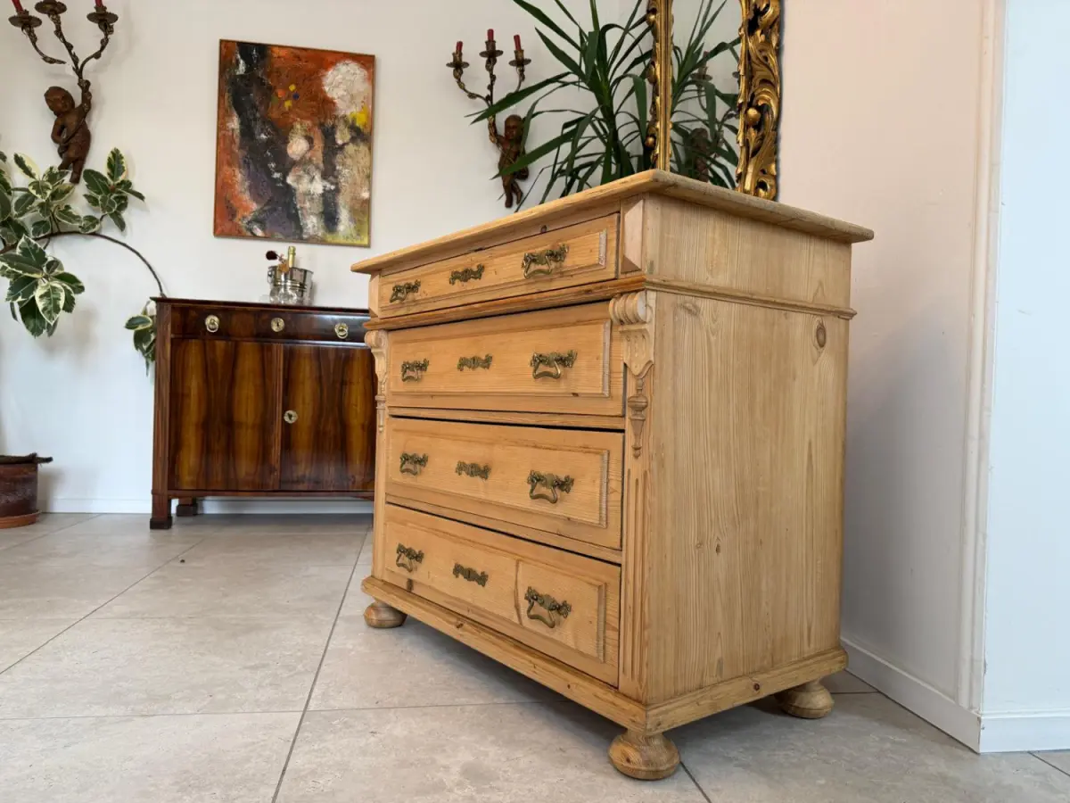 Hier handelt es sich um eine originale sauber und sehr gut erhaltene Gründerzeit 4 Ladenkommode aus Fichtenholz,