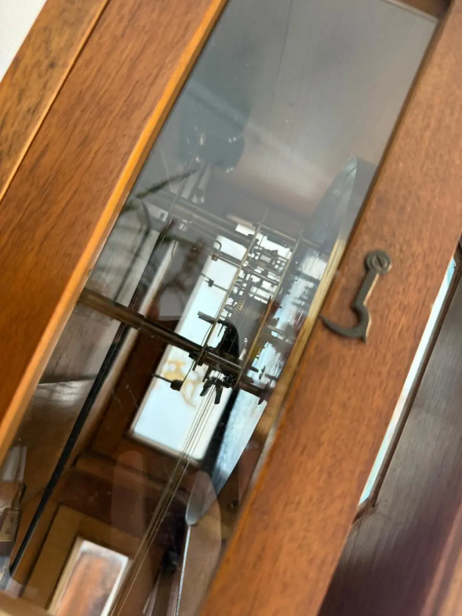 Dieses stattliche Modell beeindruckt mit klassisch vertäfeltem Gehäuse, facettiertem Glas und fein graviertem Uhrwerk – ein stilvoller Blickfang mit viel Charakter.
