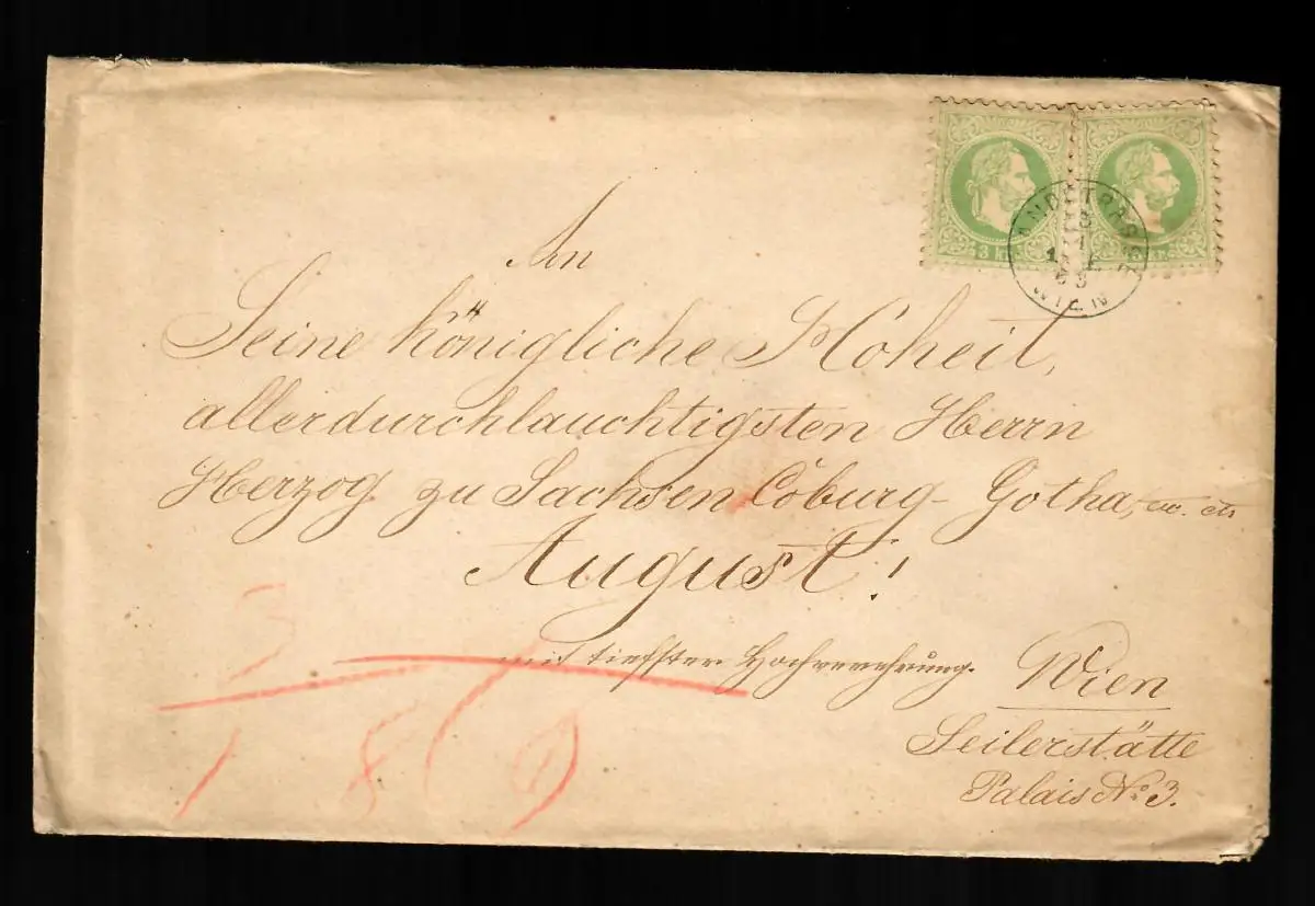 Ortsbrief Wien, doppeltes Porto, MeF MiNR. 36 I