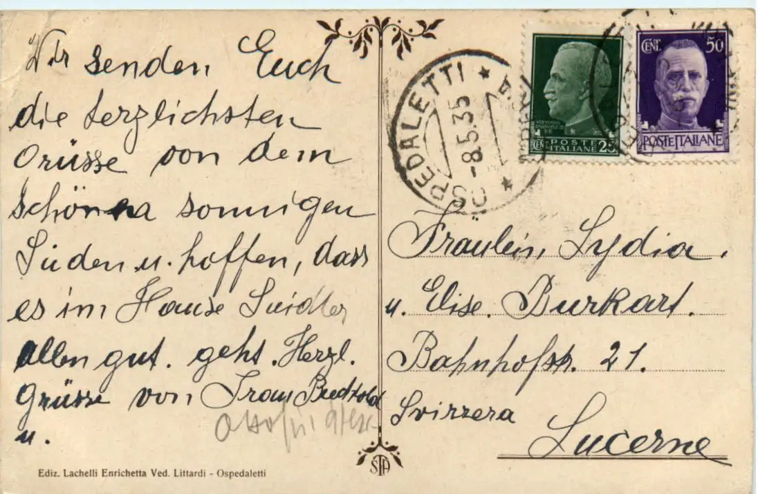 Danke. Alles Bestens. Können Sie mir allenfalls mitteilen, aus welchem Jahr die Postkarte stammt? Besten Dank.