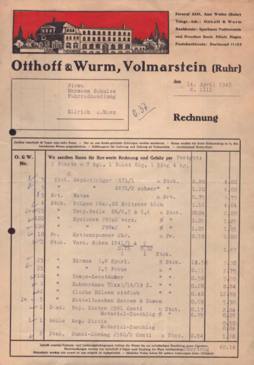 Otthoff & Wurm GmbH Volmarstein / Ruhr Rechnung 1942